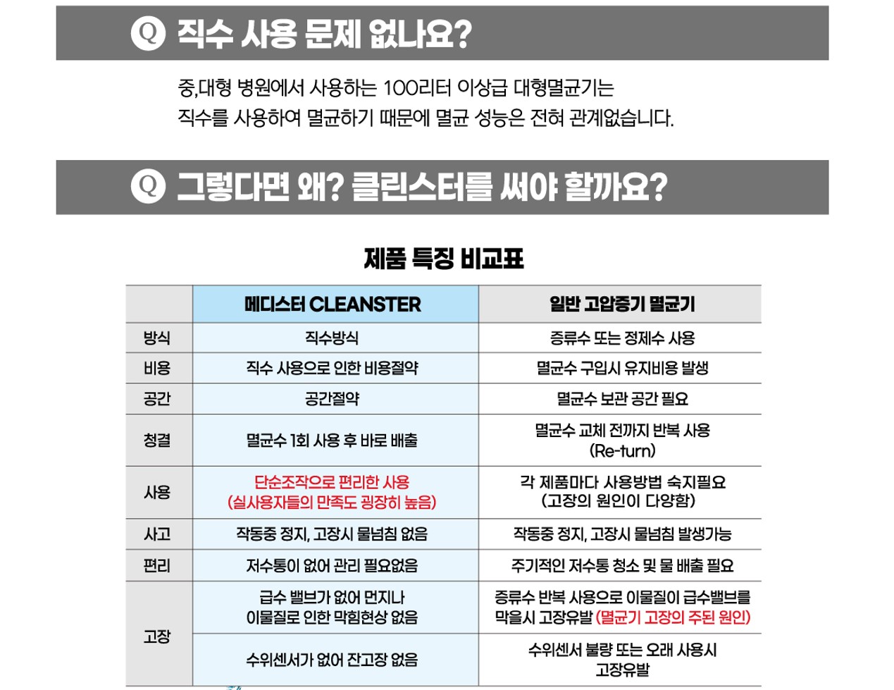 멸균기도 직수가 대세!